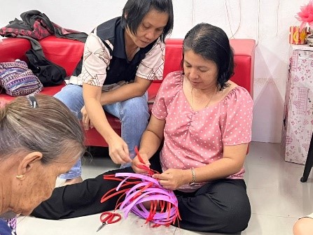 Tarikh : 16 MAC 2024 Masa : 9.00am – 11.00am Tempat : NaDi Nanga Medamit Gambar : Suasana peserta menyertai Kelas Asas mengayam bakul mengikut kreativiti dan pemilihan warna tali untuk menghasilkan mini bakul masing-masing.