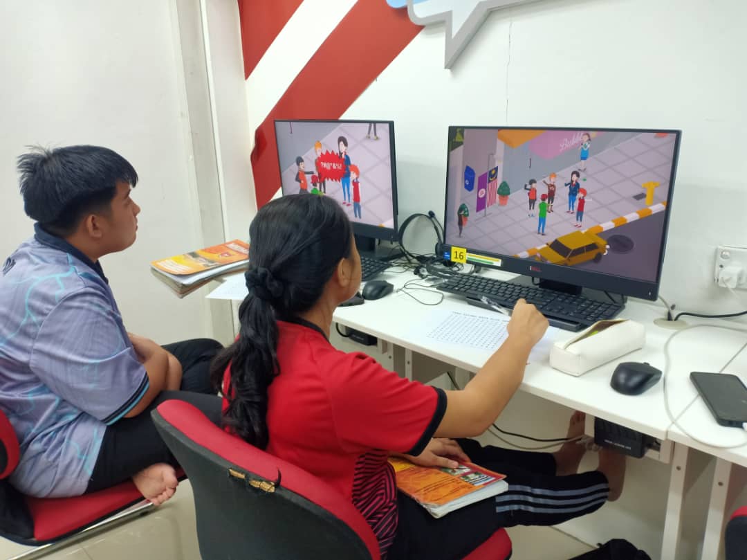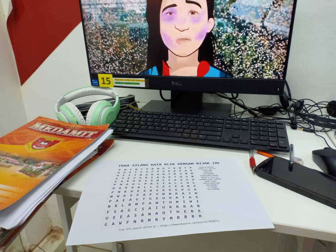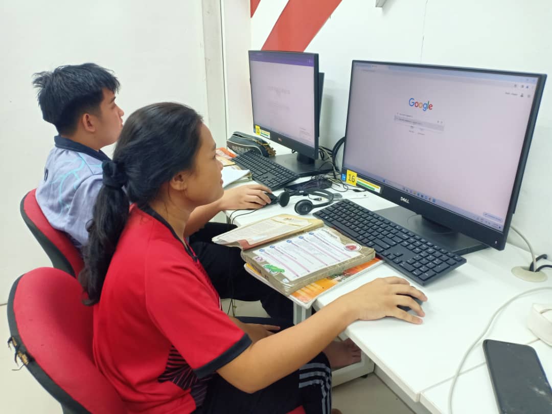 Gambar : Pelajar menggunakan internet untuk mengulang kaji pelajaran sebelum peperiksaan dan menonton tayangan Kilk Dengan Bijak serta melakukan aktiviti Teka Selang Kata.