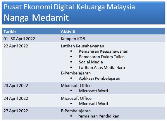 JADUAL AKTIVITI APRIL 2022
