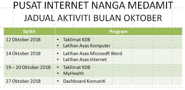 JADUAL AKTIVITI OKTOBER 2018