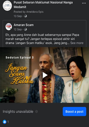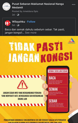 Gambar : pengkongsian Klik Dengan Bijak di Media Sosial Facebook NADI Nanga Medamit.