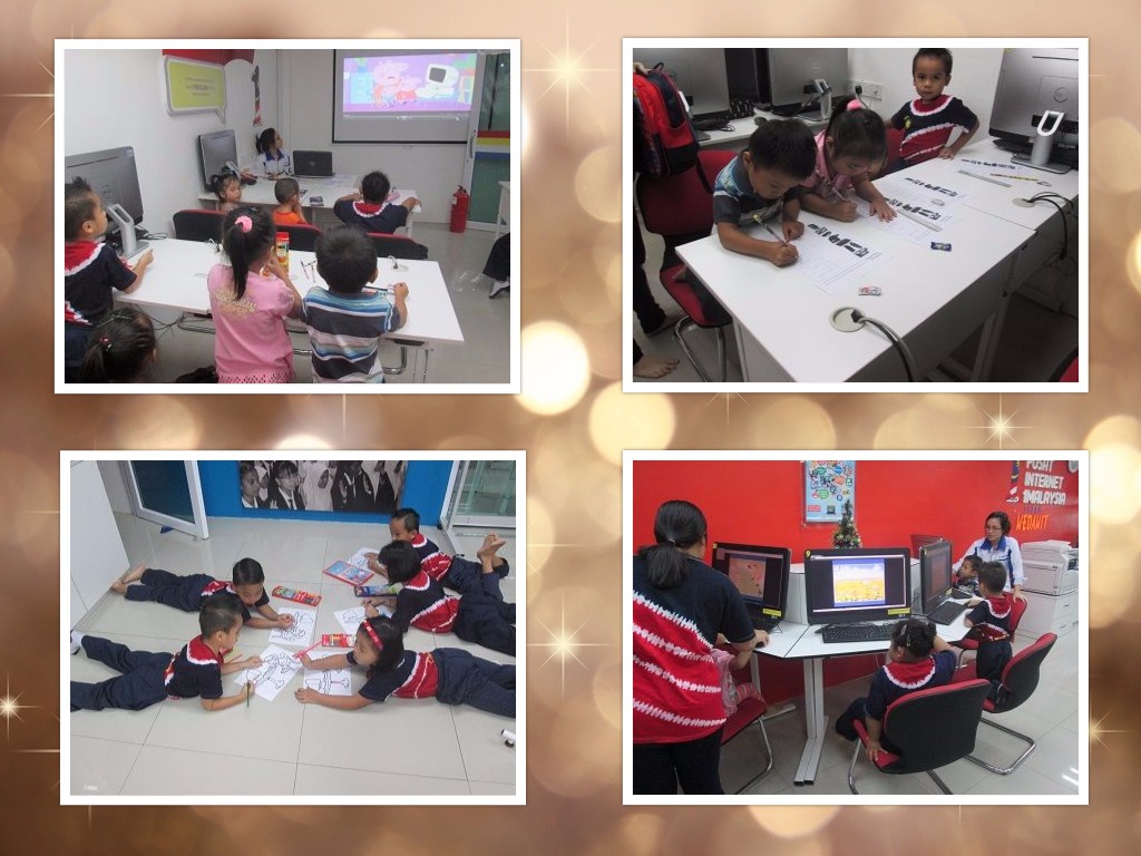 Tayangan video animasi berkaitan komputer, latihan padankan gambar dan nama bahagian komputer, pertandingan mewarna serta latihan menggunakan tetikus(permainan Bees & Honey)